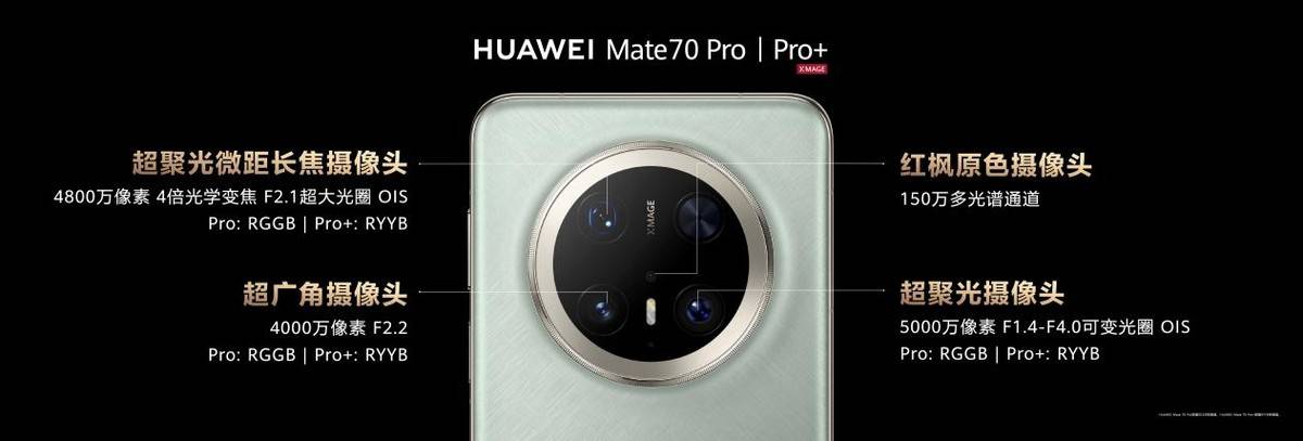 影像方面,华为Mate 70系列聚焦色彩精准还原,带来红枫原色影像系统,帮助大家记录每一份纯粹和美好。其中它首发的红枫原色摄像头,支持150万多光谱通道,能够捕获图像级丰富的环境光谱信息,搭配F1.4-F4.0可变光圈主摄和4800万像素超聚光微距长焦摄像头,对色彩有着非常清晰精准的还原。得益于红枫原色摄像头对色彩的精准还原,华为Mate 70系列的XMAGE影像还迎来了原色、鲜艳、明快三种色彩风格升级,可以满足消费者的不同拍摄需求。